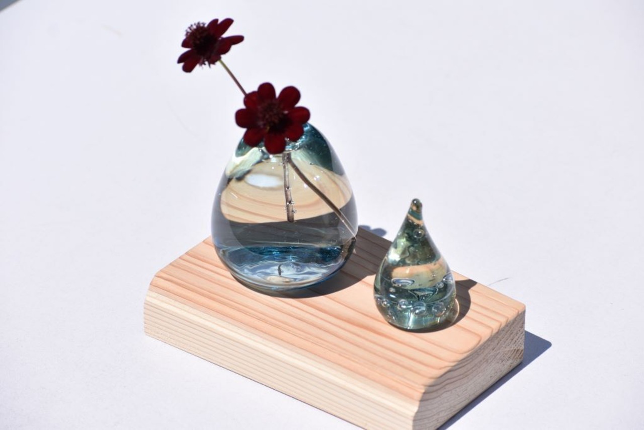 【~道草⁺プラス~ 一輪挿し&しずくのセット】(飾り台付)スカイ(薄)